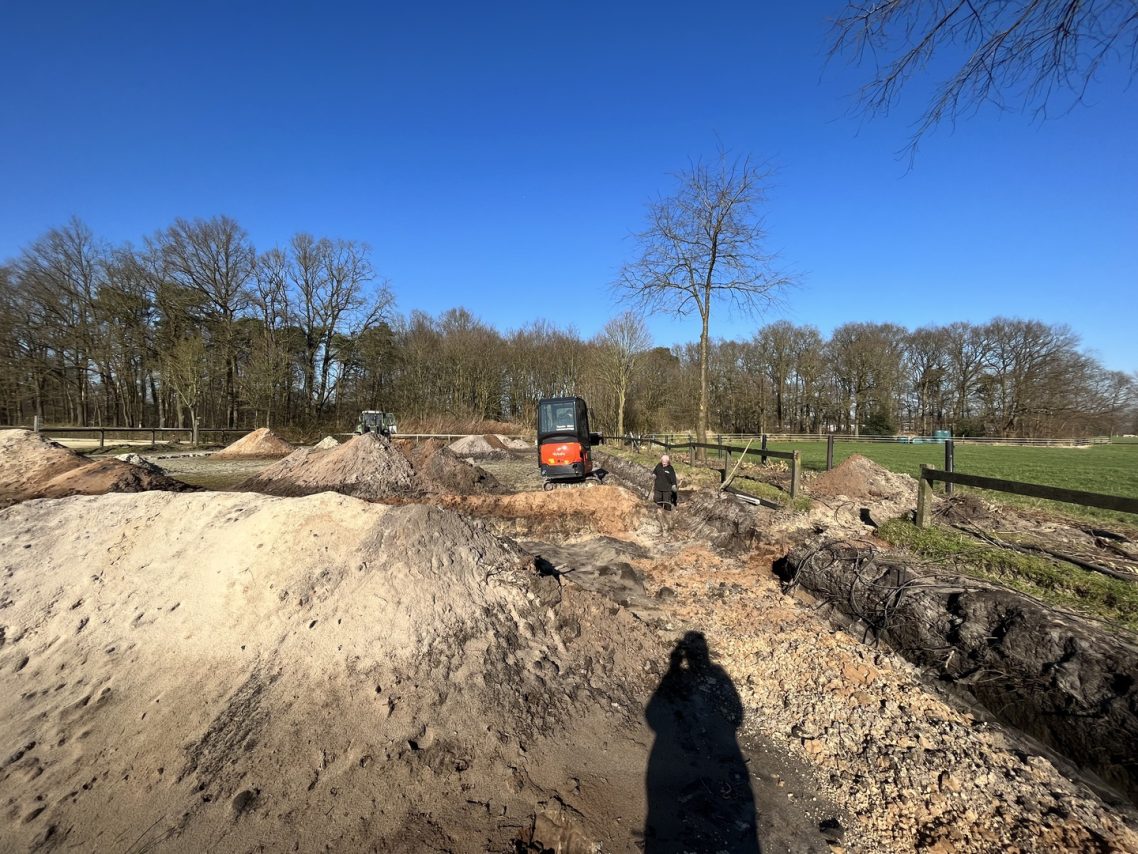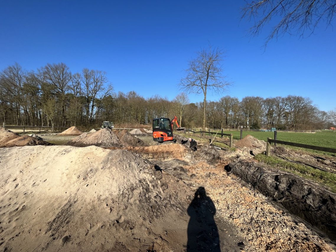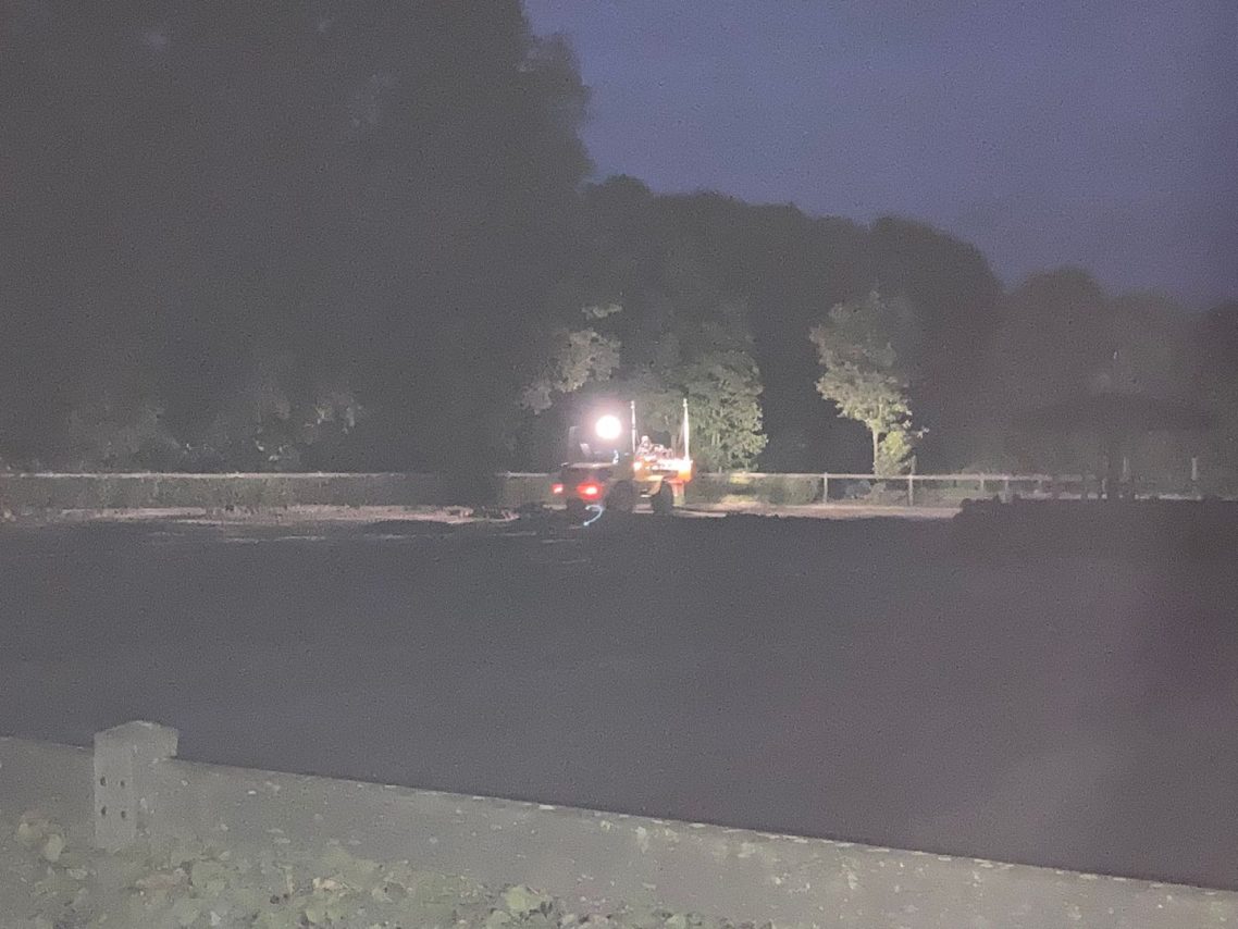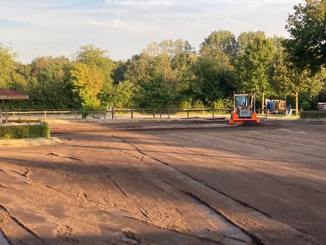 Der Dressurplatz wird bald wieder bereitbar sein, mit einer neuen Beregnungsanlage sowie Flutlichtmasten. Zudem wurden Bäume und Büsche beschnitten, sodass sich die Pferde bei der Arbeit nicht mehr so leicht erschrecken können, wenn unsere tollen Schulpferde bald wieder die Weidezeit genießen und sich austoben sowie sich den Bauch mit sattem Gras voll "mampfen".